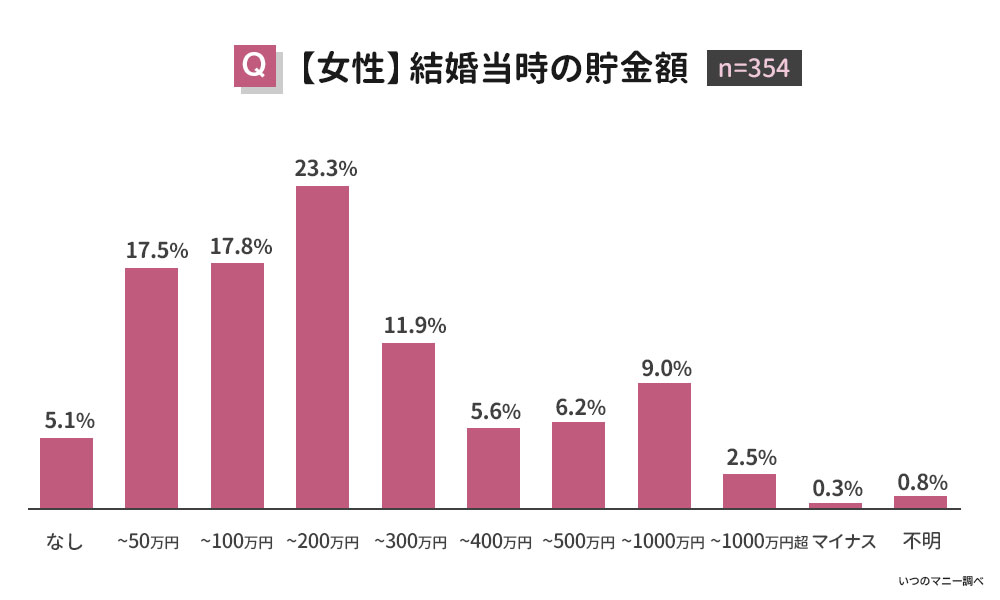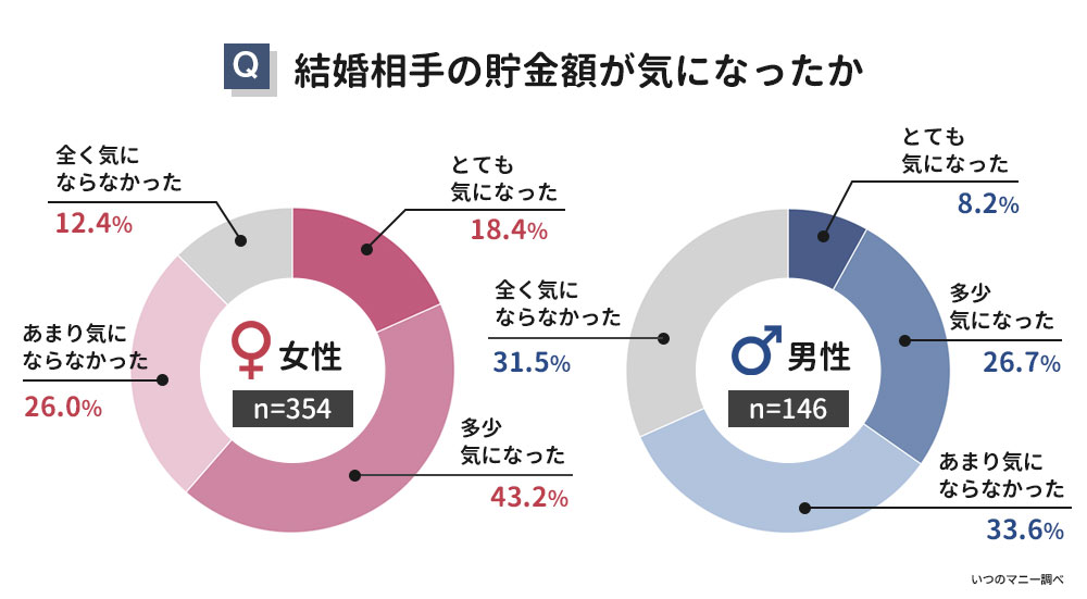 「結婚相手の貯金額が気になったか」や「結婚時の貯金額」について調査しました。