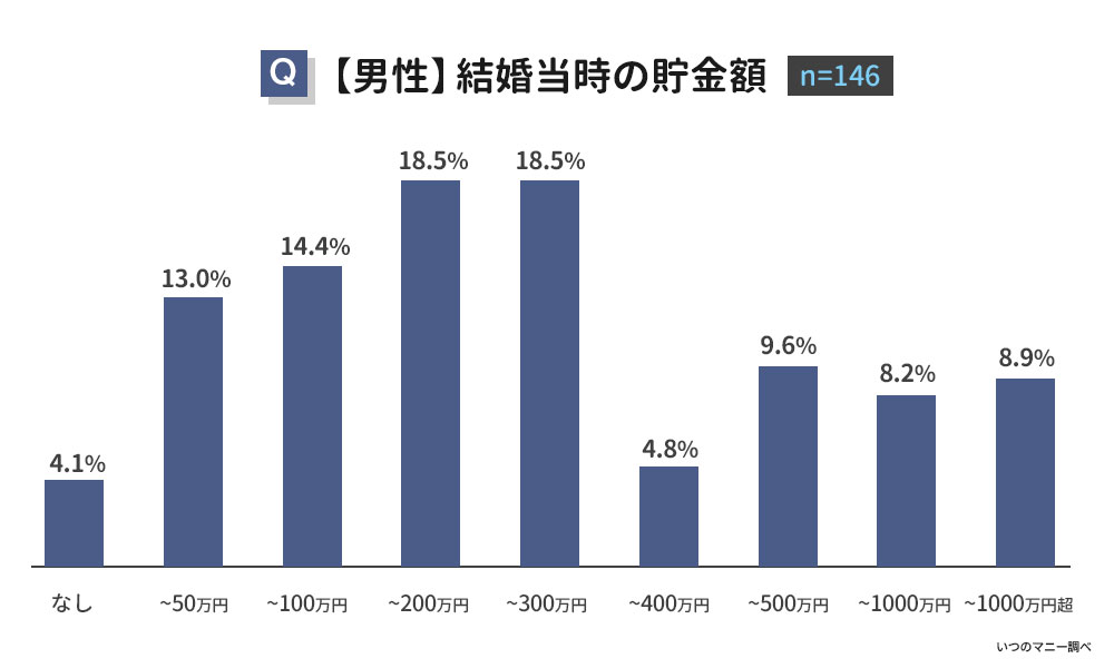 男女別に「結婚したときの貯金額」を聞いたところ、回答は以下のようになりました。